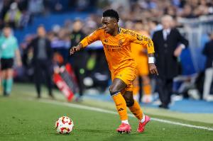 体育资讯4月17日讯 欧冠1/4决赛次回合比赛,维尼修斯破门,皇马主场1-2阿森纳,两回合总比分1-5出局。